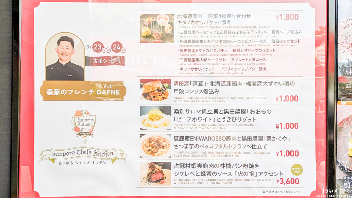 11丁目「プレシャステーブル」の23日24日のお店は、森彦のフレンチDAFNE(ダフネ)」です。