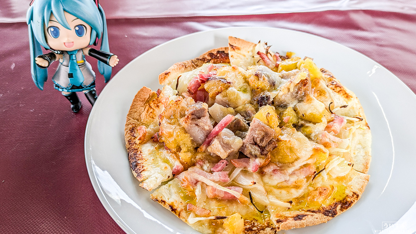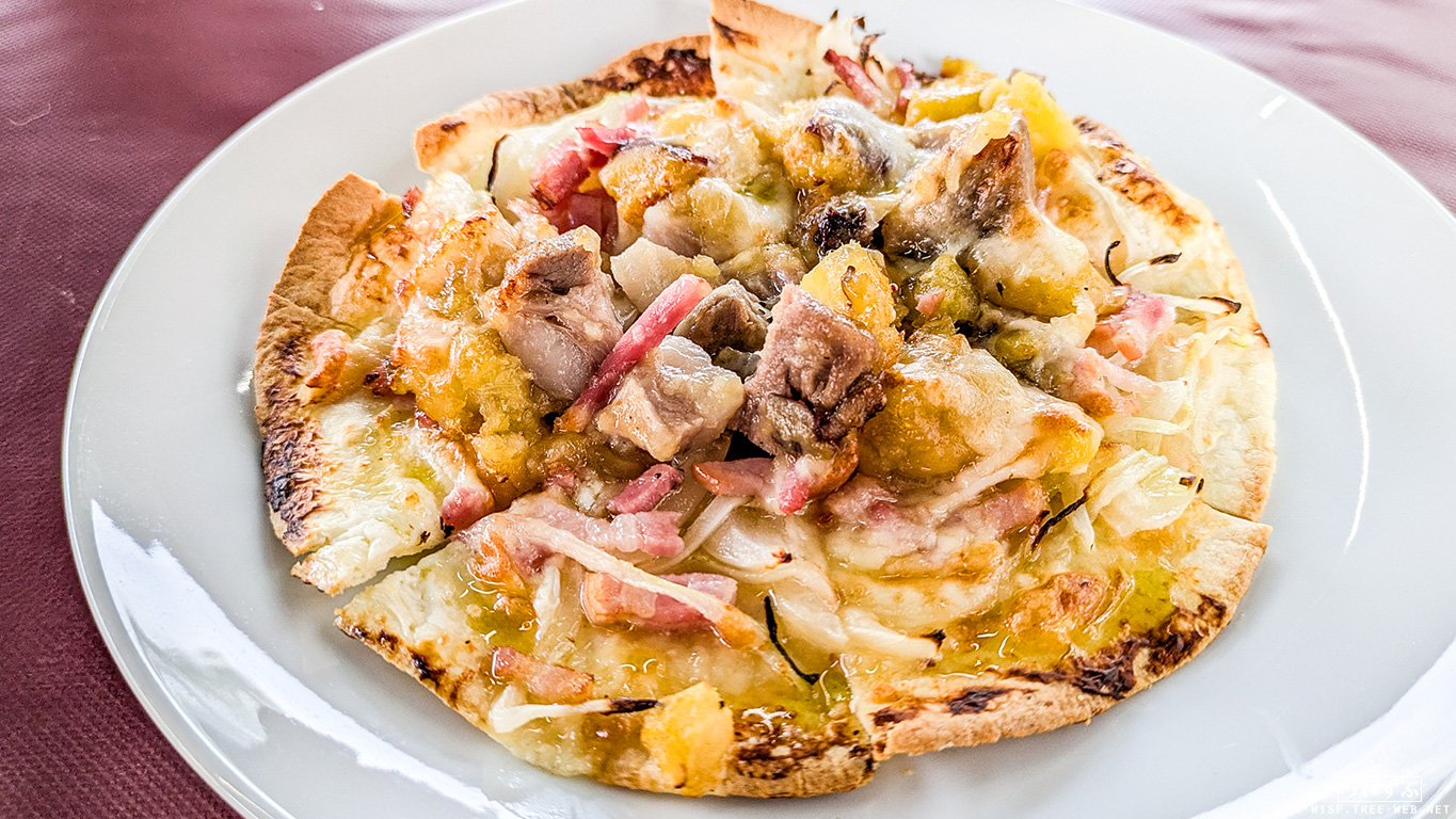 さつまいもを使ったピザのようなメニューで、お肉やお野菜がしっかり味付けされており、とても美味しかったです。
