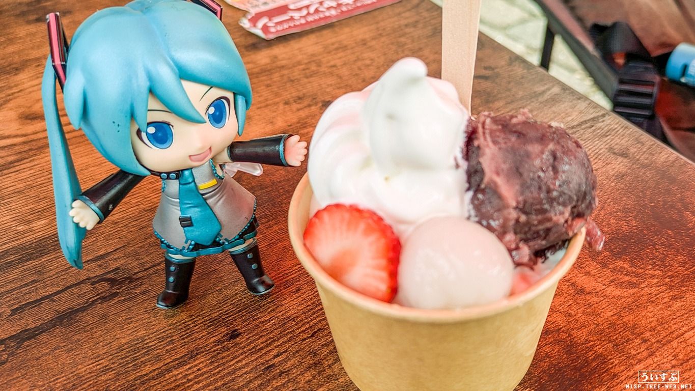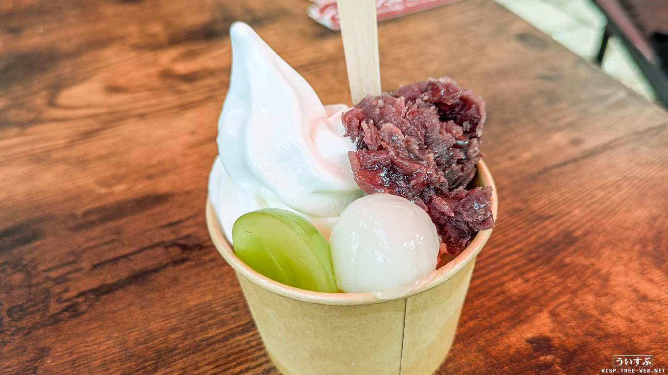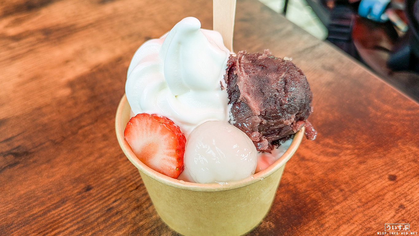 あんこが美味しかった。しっかりしたあんこで、ソフトクリームとのマッチ。白玉のアクセントも最高です。