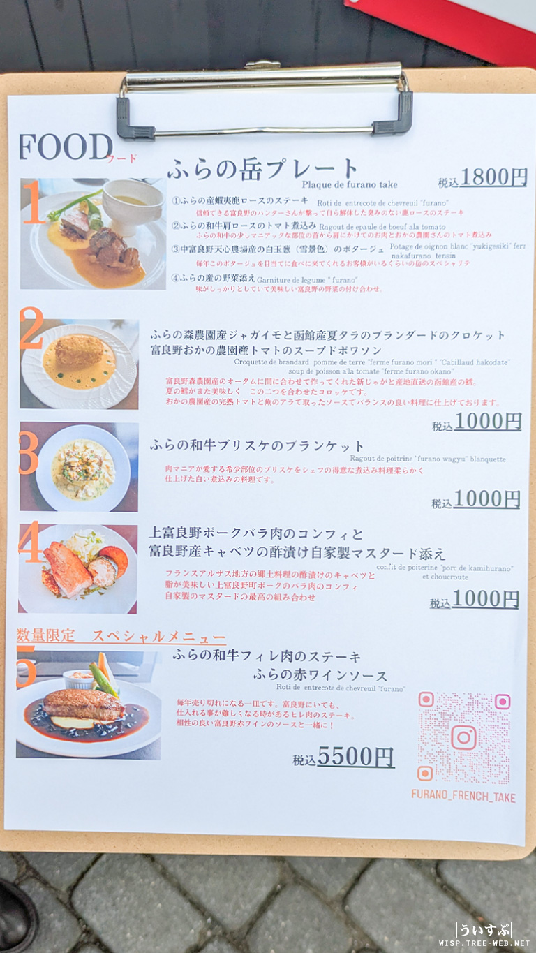 今回は「ふらの森農園産ジャガイモと函館産夏タラのブランダードクロケット富良野おかの農園産トマトのスープドポワソン」「ふらの和牛ブリスケのブランケット」「上富良野ポークパラ肉のコンフィと富良野産キャベツの酢漬け自家製マスタード」をチョイスしました。