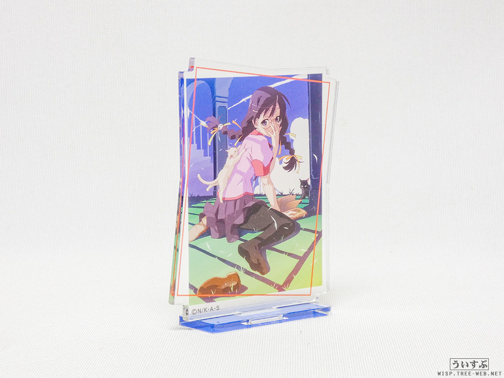 〈物語〉シリーズのキービジュアルがアクリルスタンドになった「〈物語〉シリーズ アクリルスタンド」です。100エンショップのセリアで見つけました。