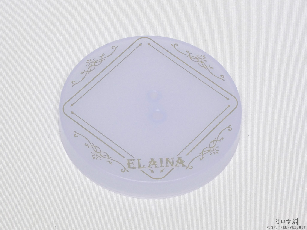 薄紫の円形台座で、ELAINAの文字が入っています。