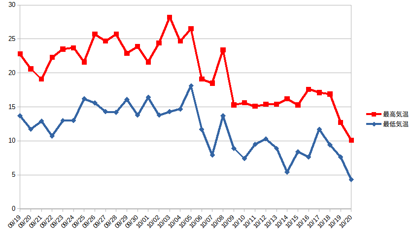 | 年月日 | 最高気温 (℃) | 最低気温 (℃) |