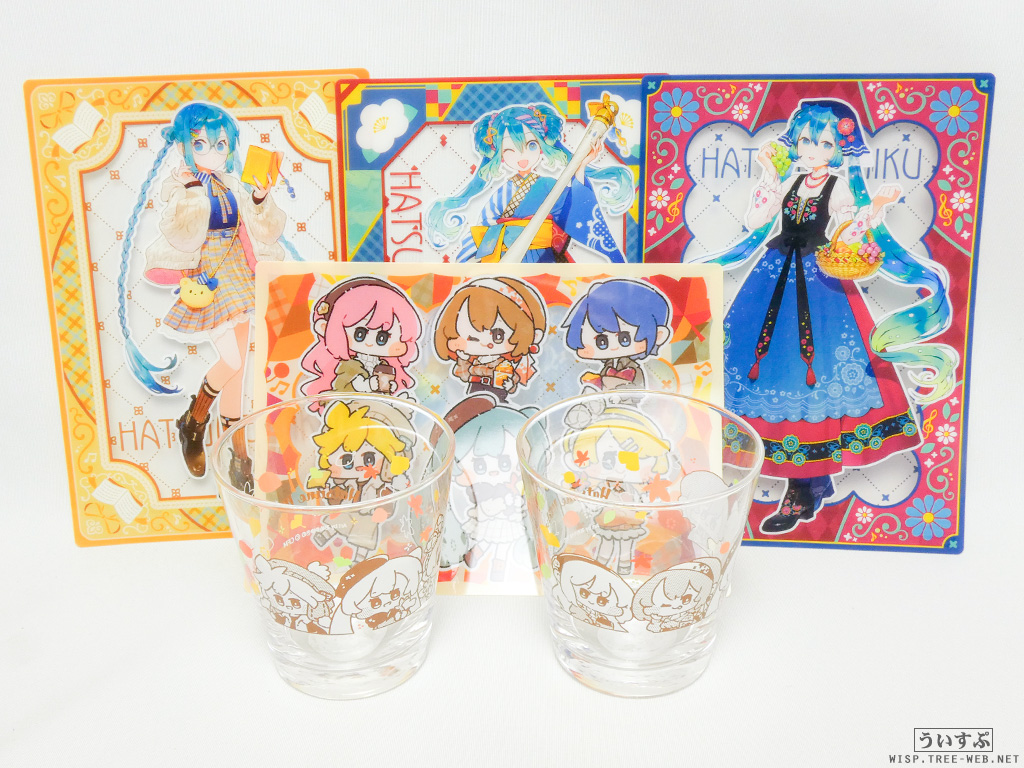 グラスの見分け方は、キャラクターが3人(ミク、リン、レン)か4人(ミク、KAITO、MEIKO、ルカ)の違いとなっています。