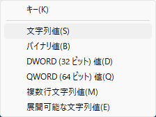 2)右クリックから「文字列値(S)」をクリックします。