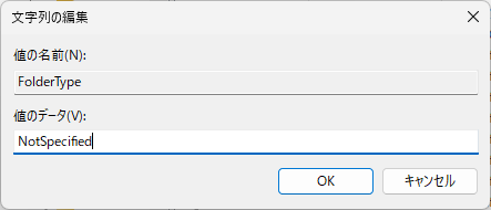 4)次に値のデータに「NotSpecified」と入力してOKします。