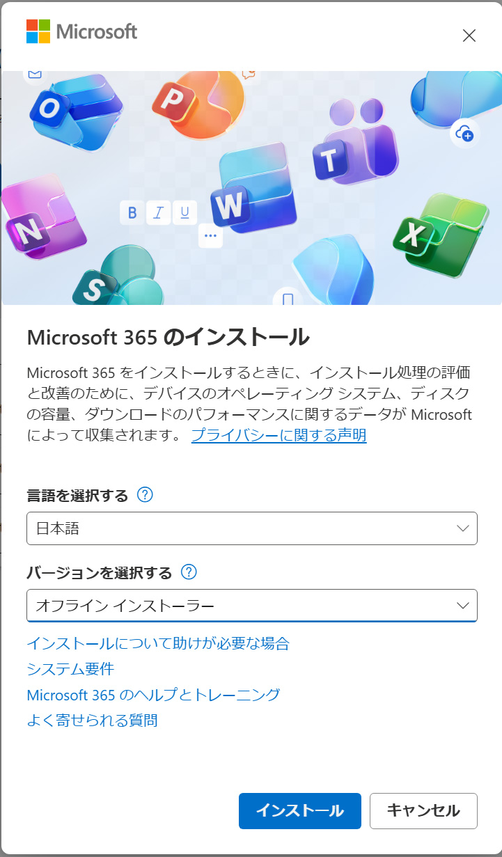 インストールできる小さいパッケージ「OfficeSetup.exe」を利用したインストールをしても改善されませんでした。