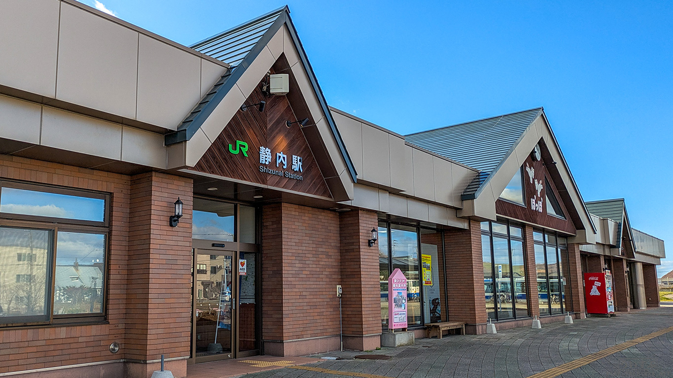 バスが到着した場所は、静内駅(現:観光情報センター)になります。