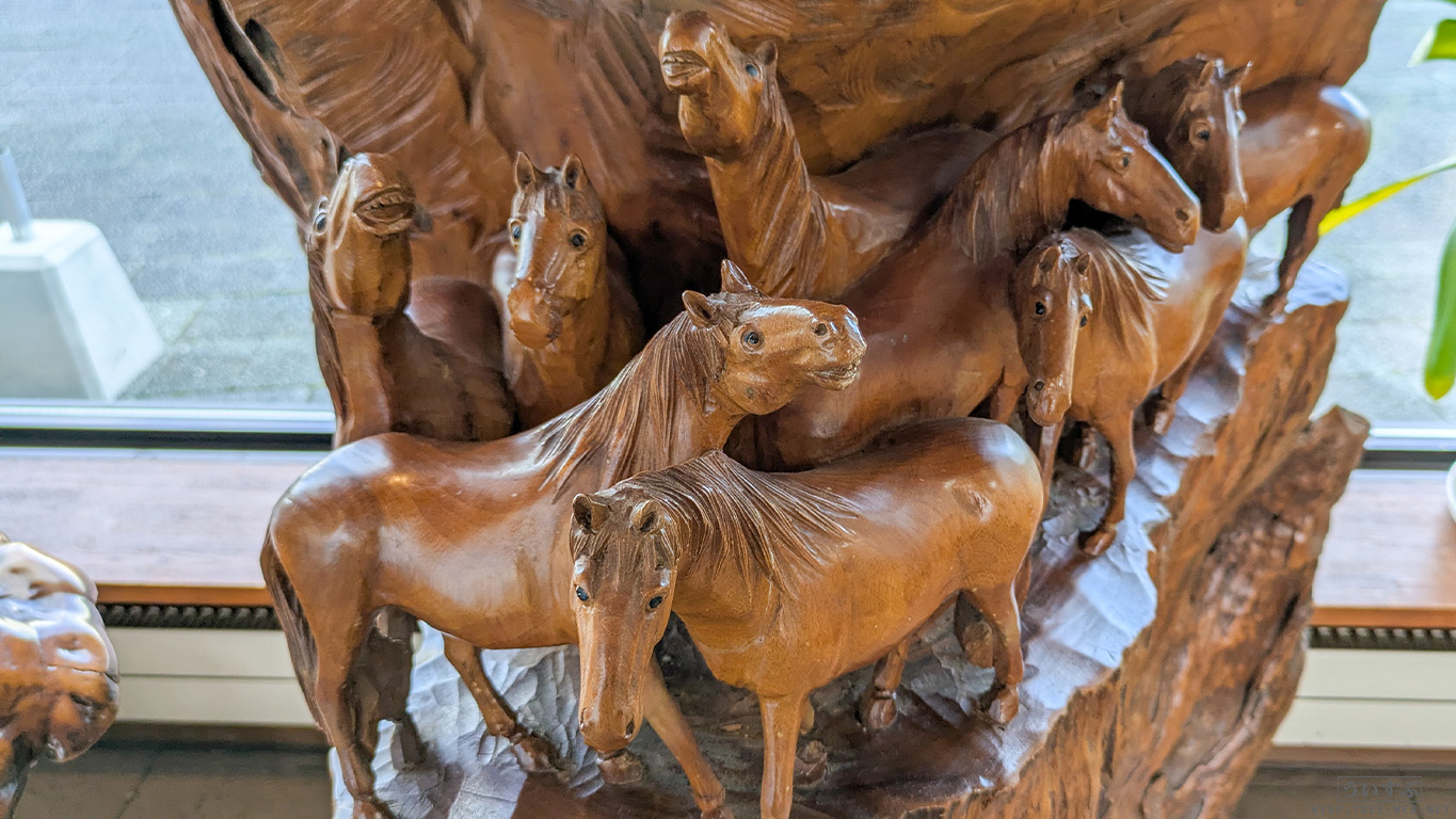 クロックタワーも馬だし、木彫りも馬ばかりでした。