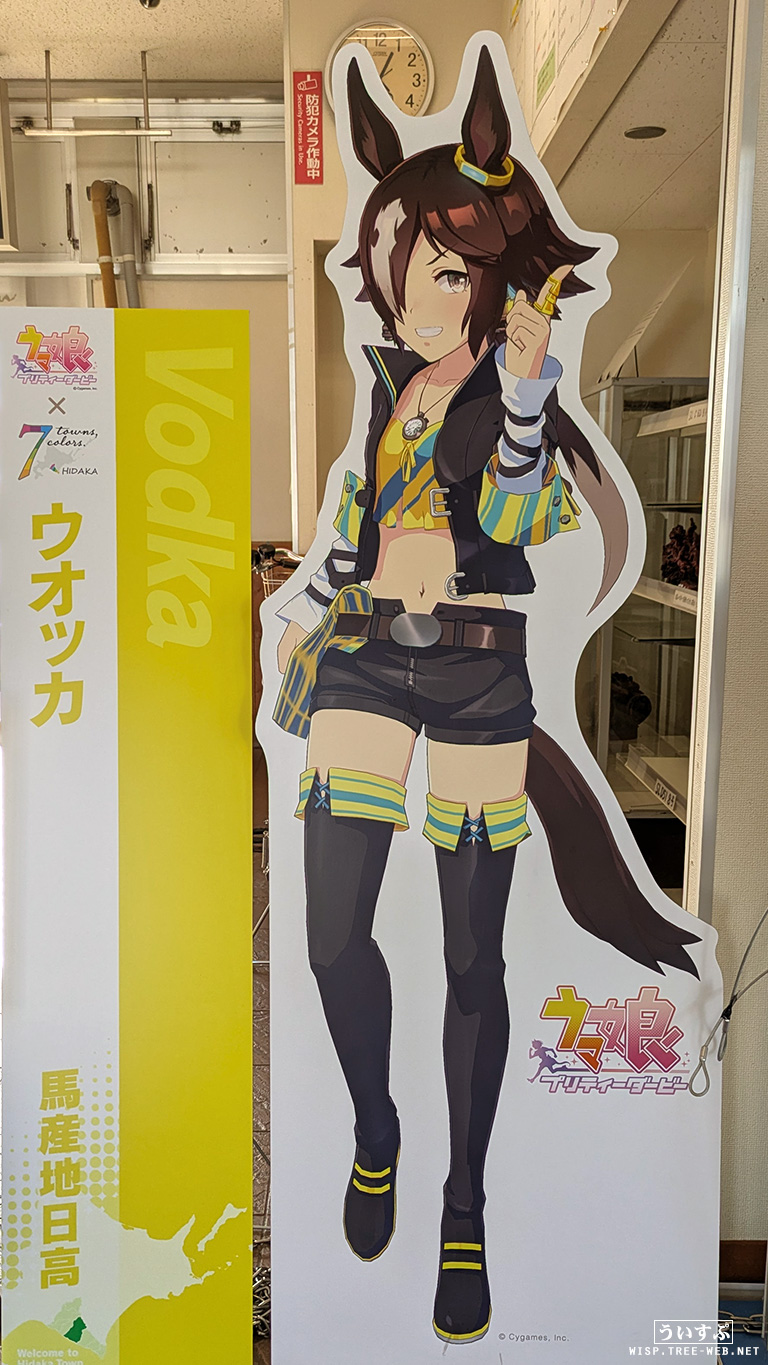 こちらでは、ウマ娘のウォッカが出迎えてくれました。ウォッカは位置がずれることがあるようですが、タイミングよく会えることができました。