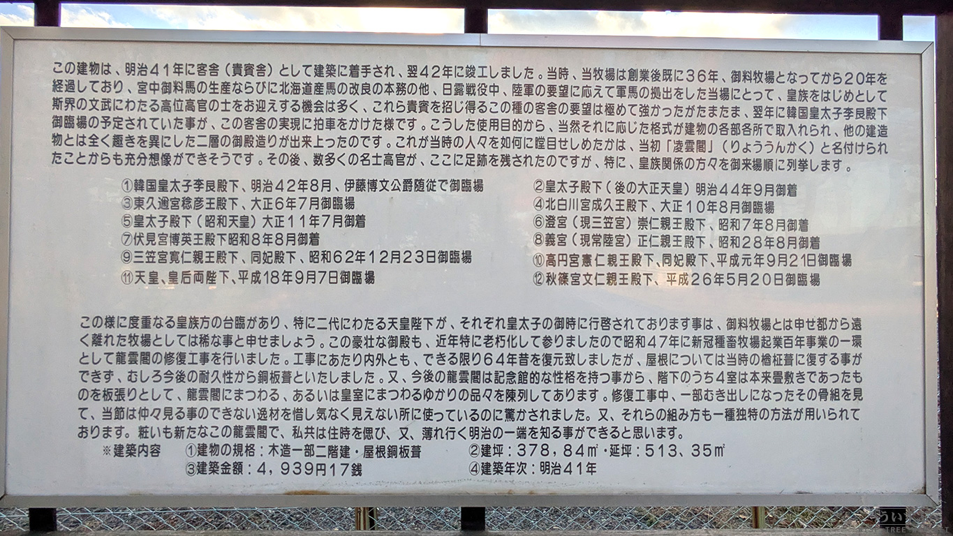 明治41年(1908年)に建築に着手し、翌年に竣工した貴賓館で、龍雲閣といいます。