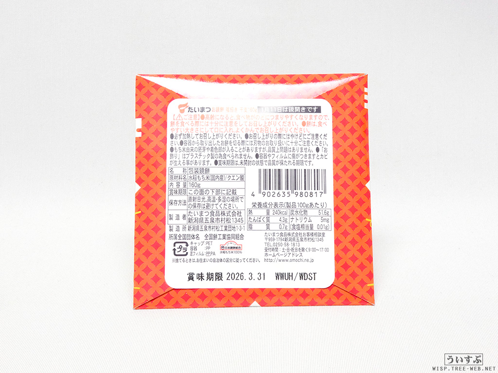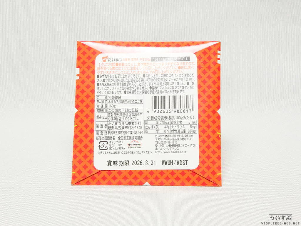 たいまつ食品 お鏡餅 まる餅入り 招き猫(2025年 巳年)