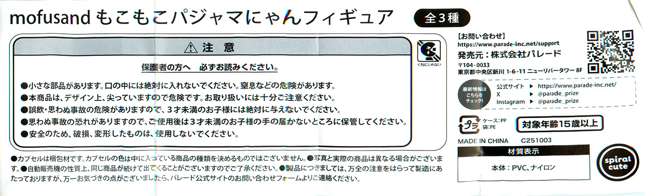 [カプセルトイ] パレード もこもこパジャマにゃんフィギュア