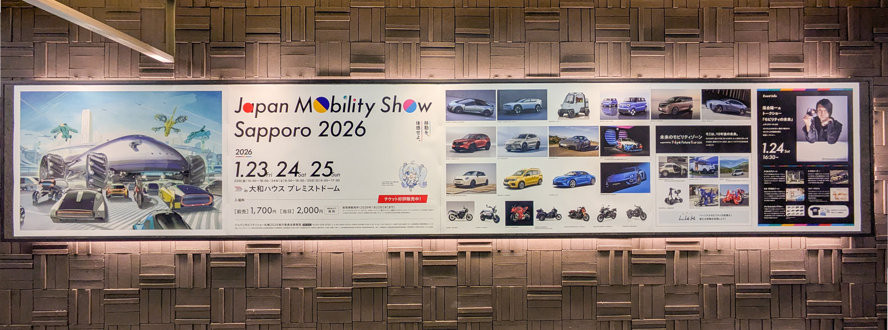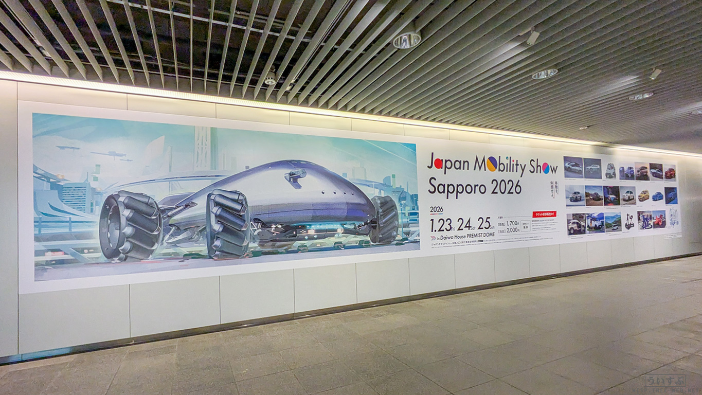 今週末から始まる「Japan Mobility Show Sapporo 2026」の駅広告を見かけました!