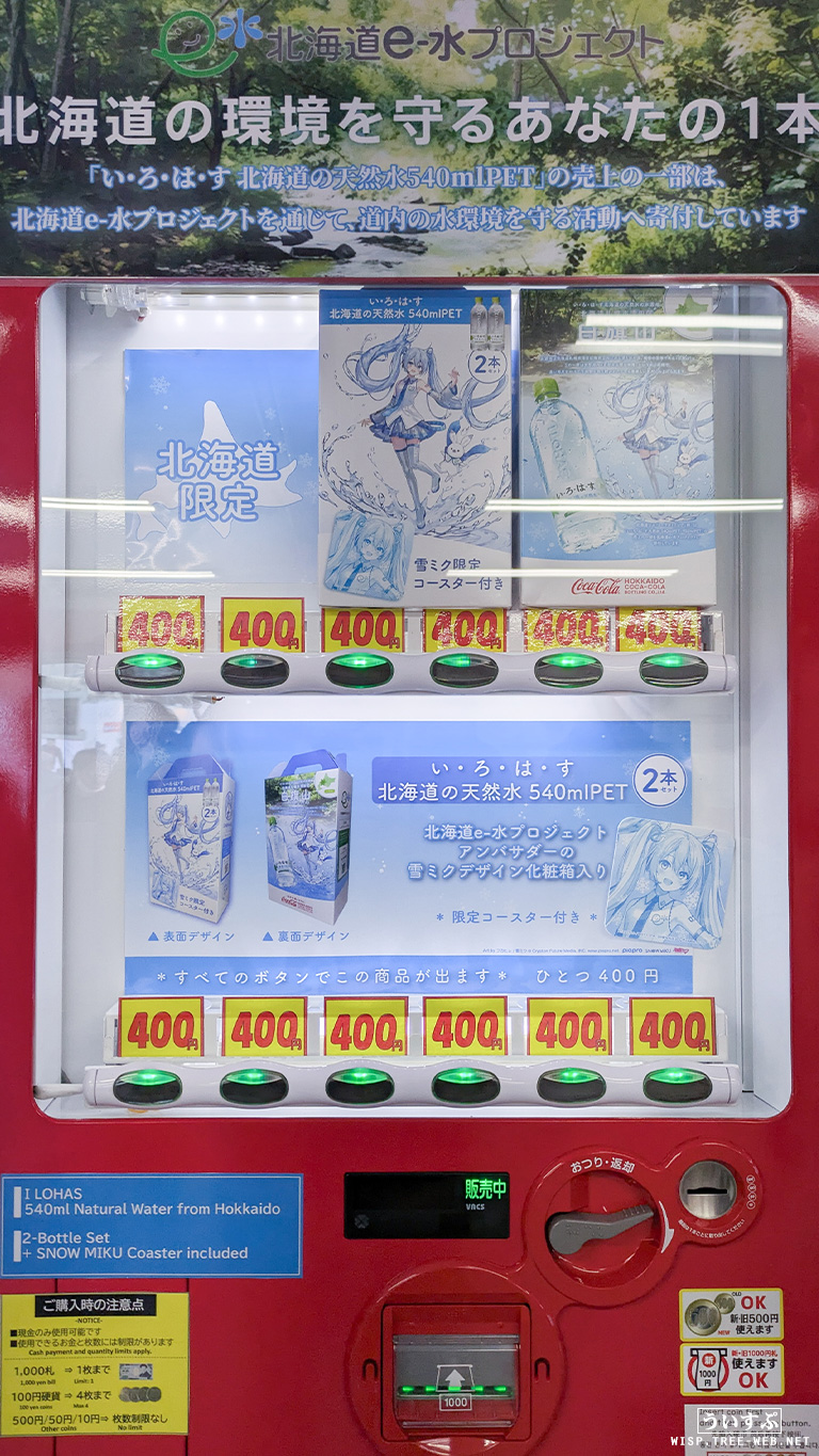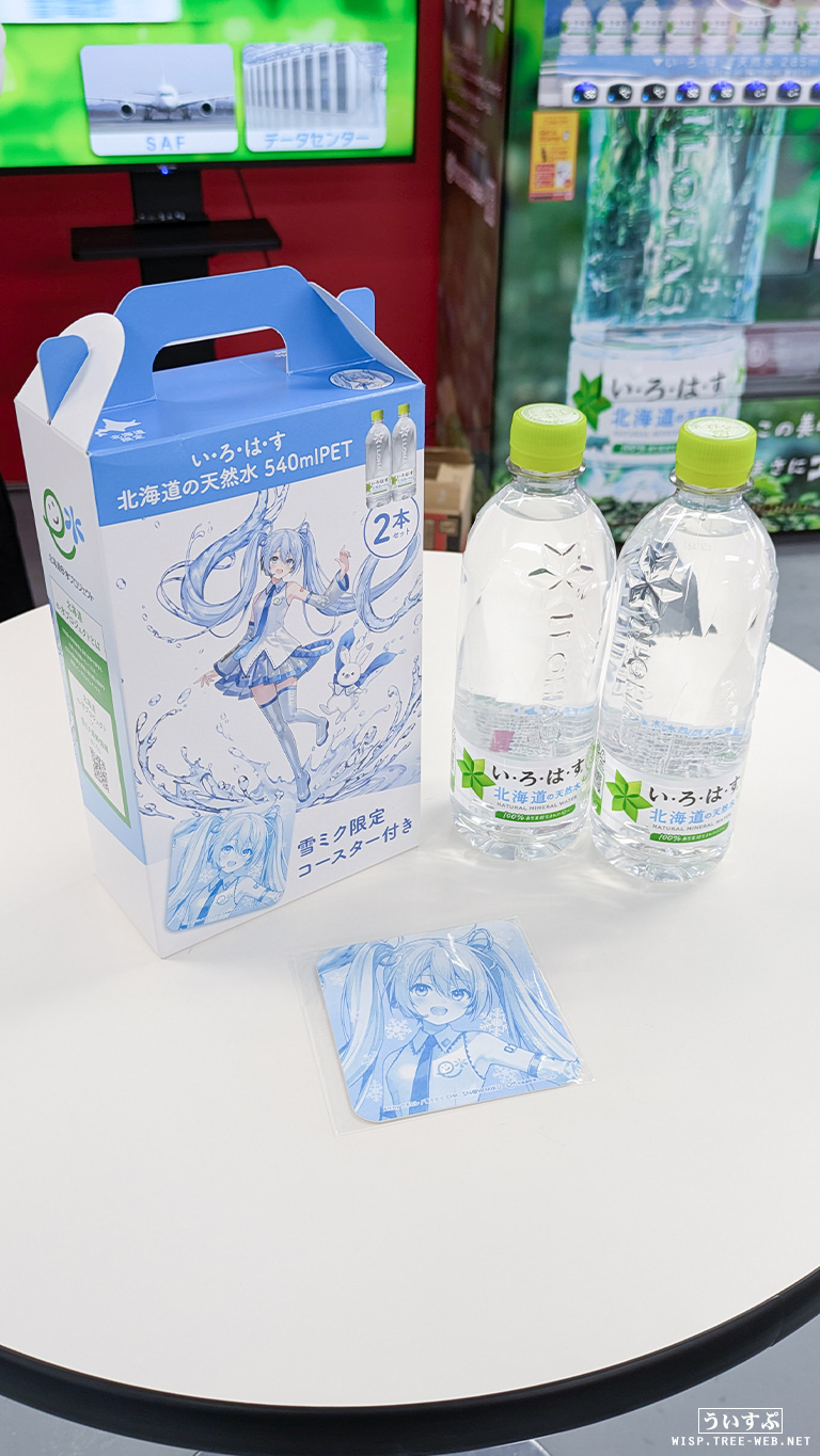 さらに3丁目の無料休憩所内では、北海道e-水プロジェクト アンバサダーの雪ミクデザインの化粧箱に入った「い・ろ・は・す北海道の天然水… pic.twitter.com/JFuNT6khOT