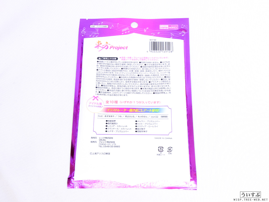 ラインナップ:博麗霊夢 / 霧雨魔理沙 / レミリア・スカーレット / フランドール・スカーレット / ルナサ・プリズムリバー / メルラン・プリズムリバー / リリカ・プリズムリバー / ミスティア・ローレライ / 幽谷響子 / 豊聡耳神子