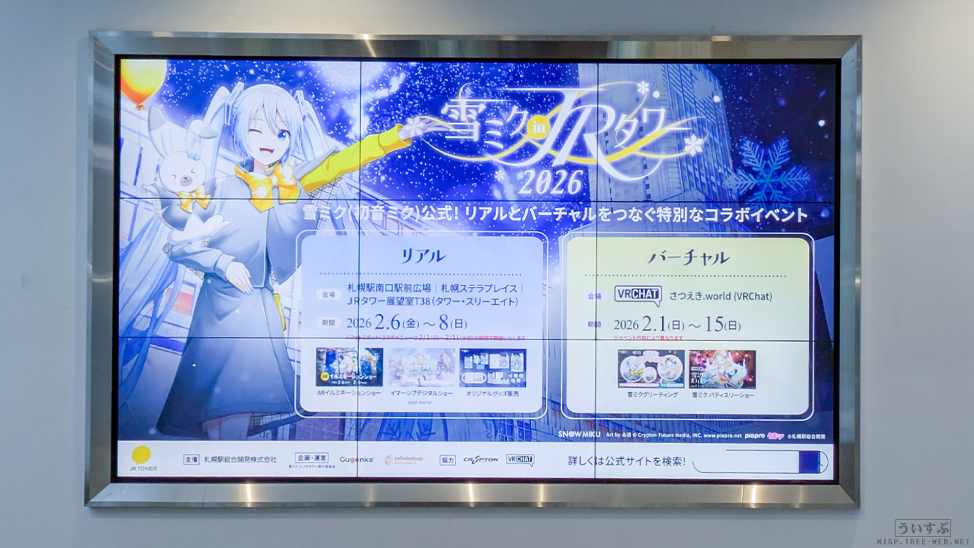 2月6日から8日まで札幌駅南口駅前広場、札幌ステラプレイス、JRタワー展望室T38(タワー・スリーエイト)の3会場で「雪ミク in JRタワー」のイベントが開催されました。