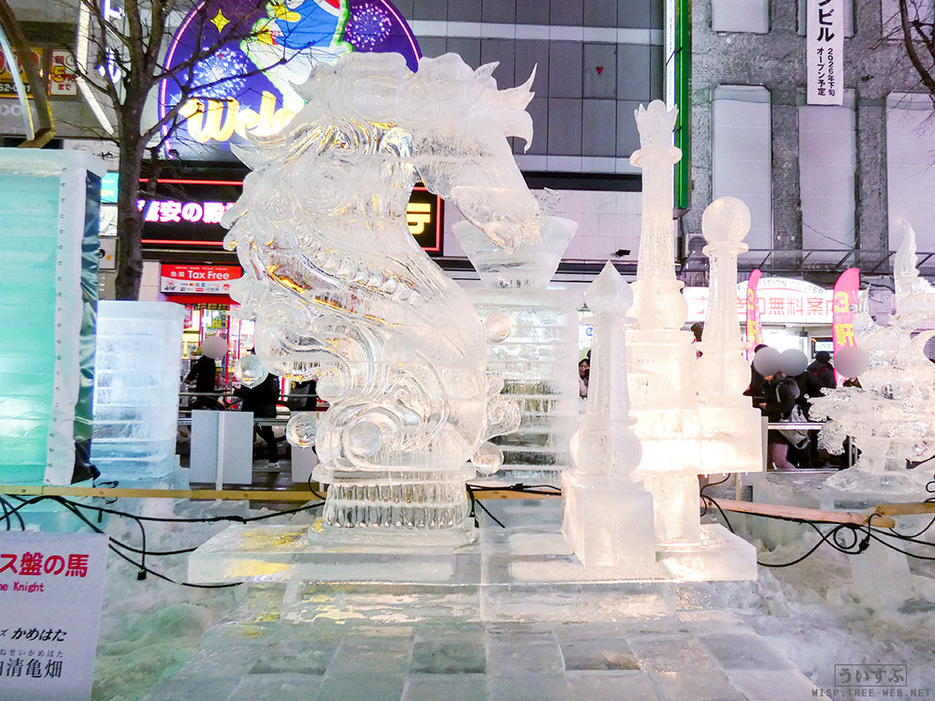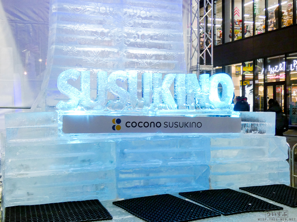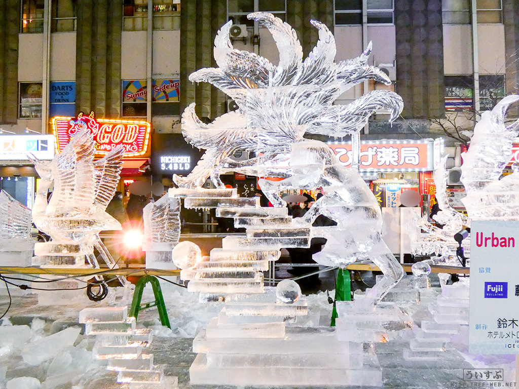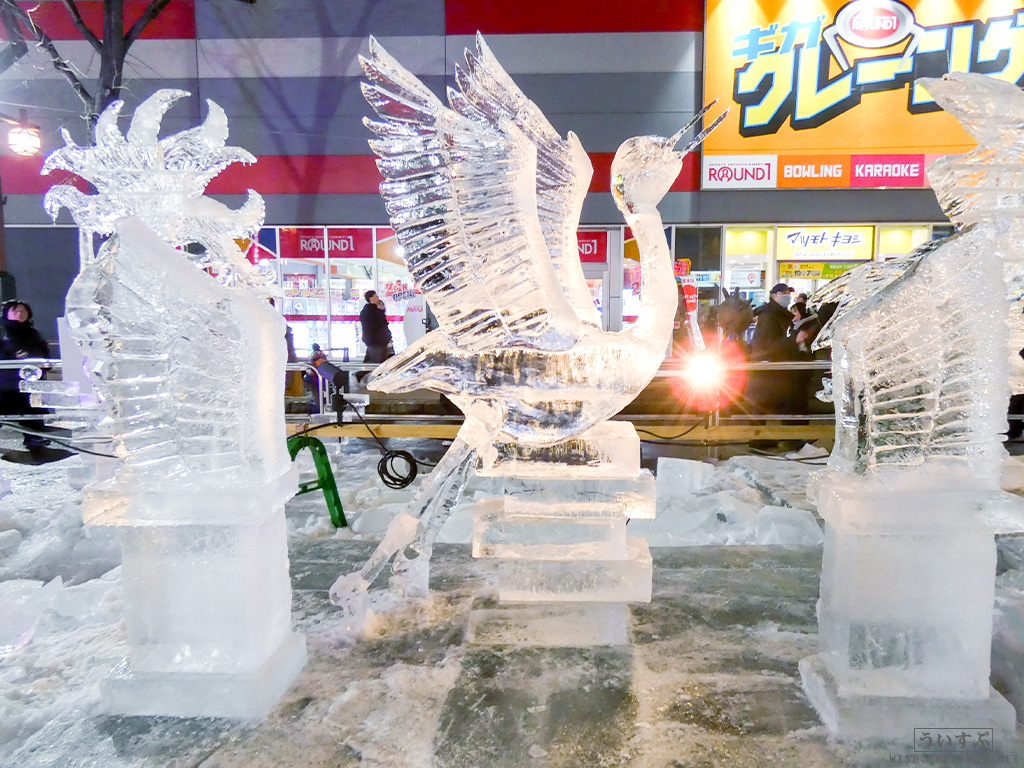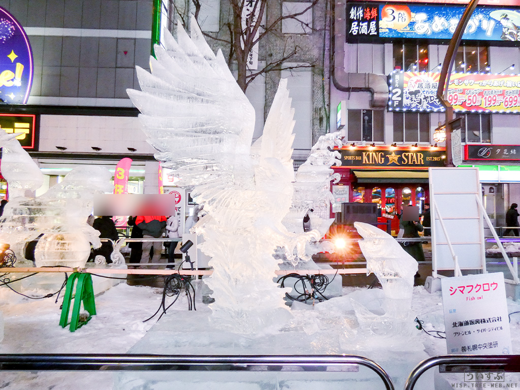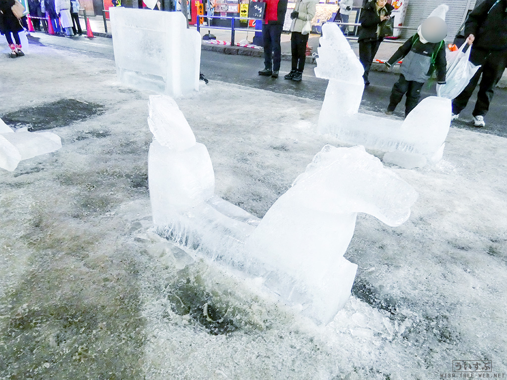 すすきの会場では、氷像を楽しめるコーナーとなっており、暗くなるとライトアップされ、より幻想的な雰囲気を楽しむことのできるエリアです。