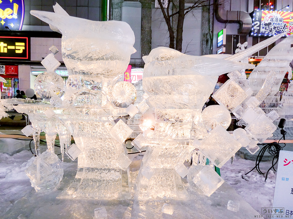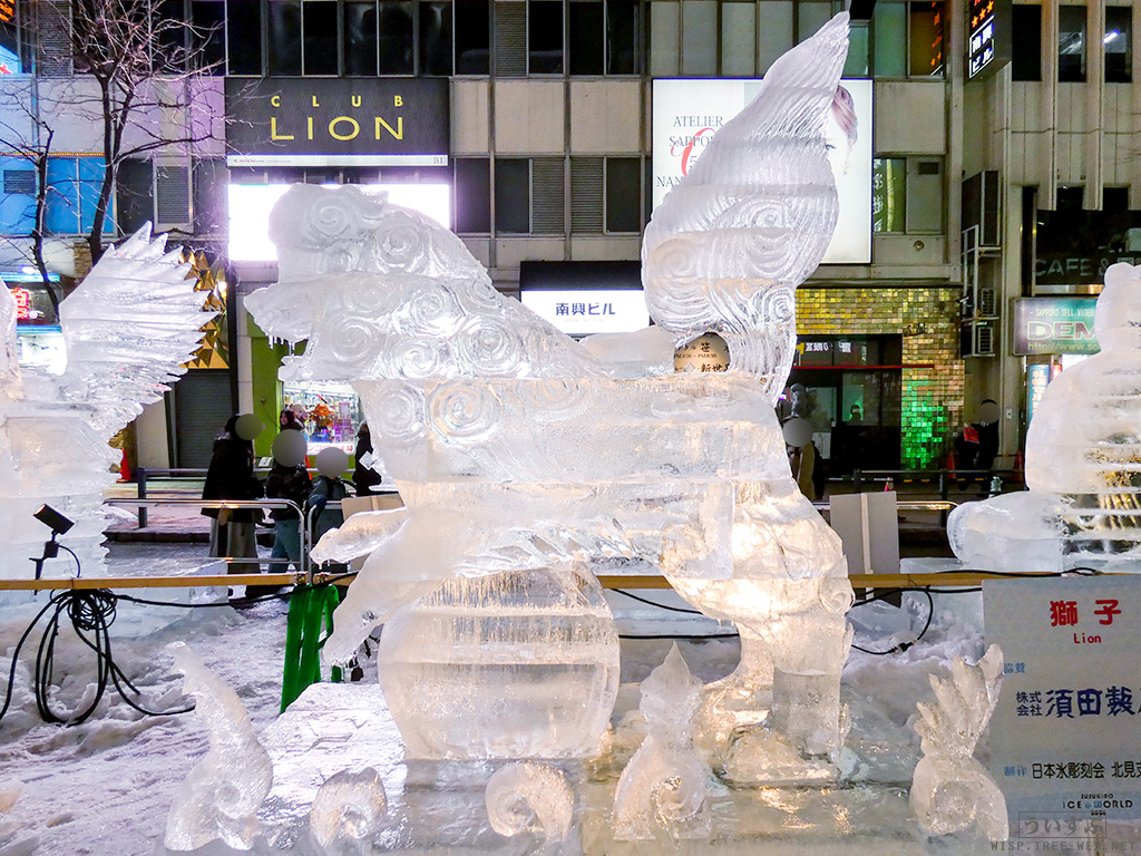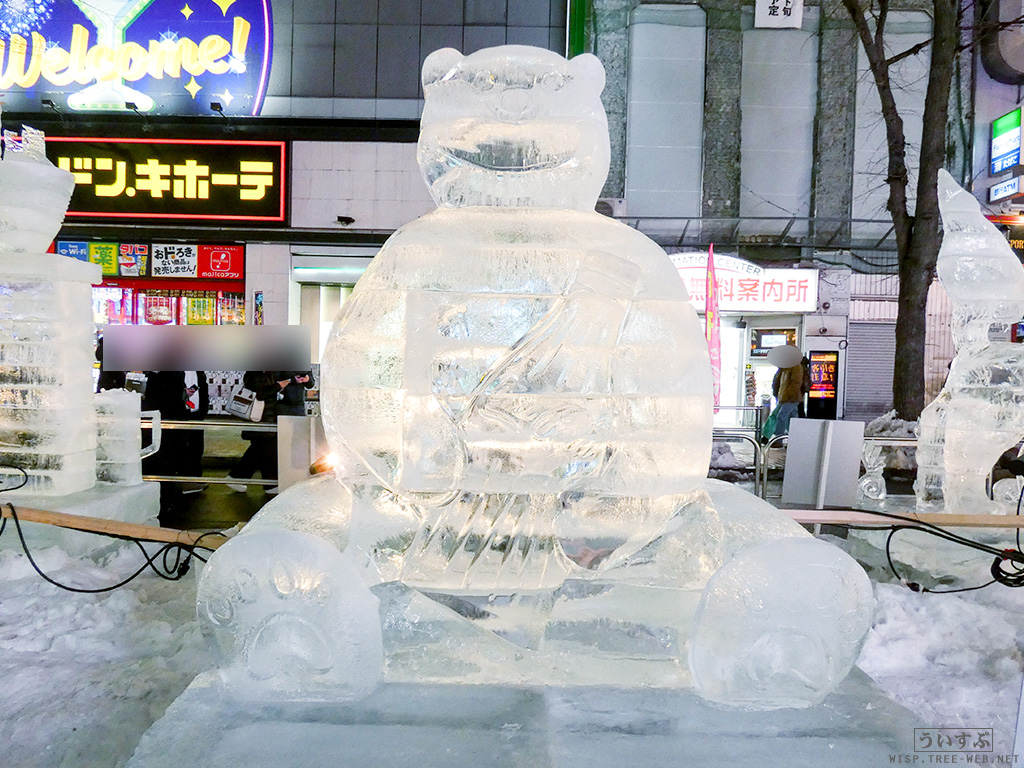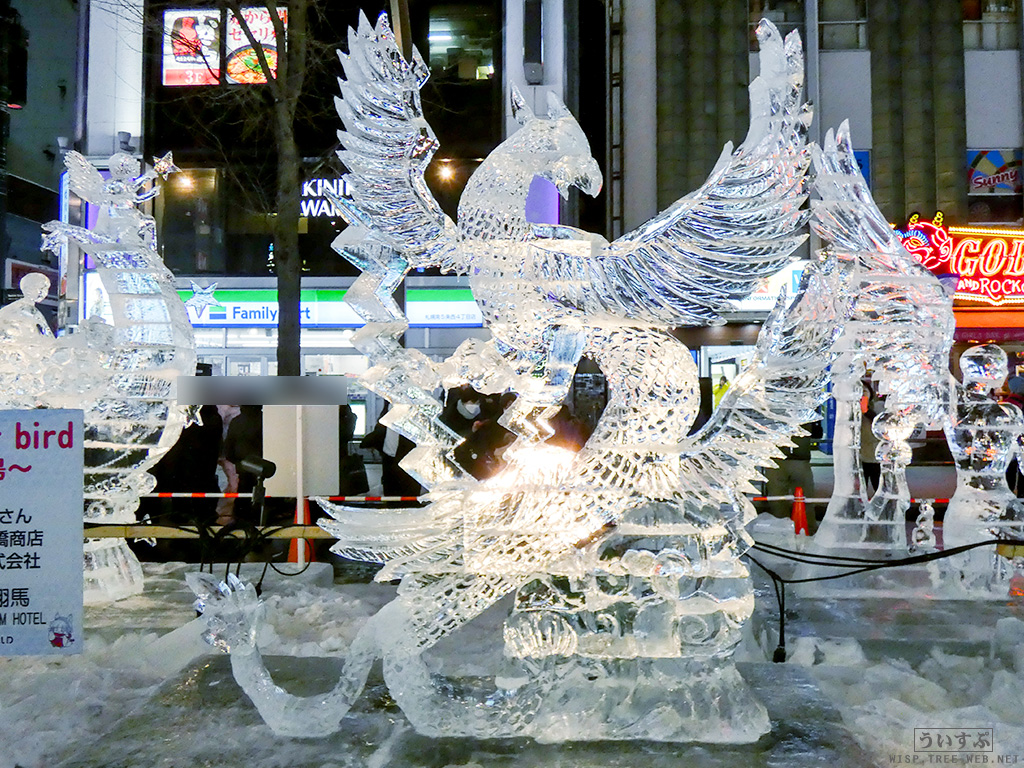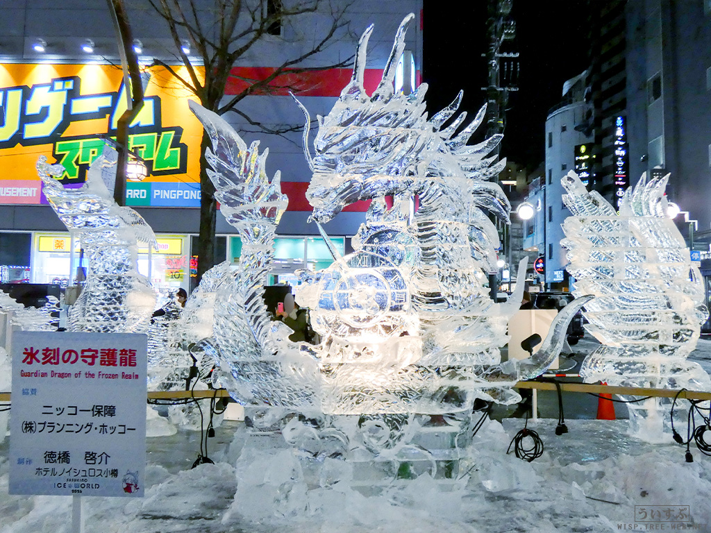 すすきの会場では、氷像を楽しめるコーナーとなっており、暗くなるとライトアップされ、より幻想的な雰囲気を楽しむことのできるエリアです。