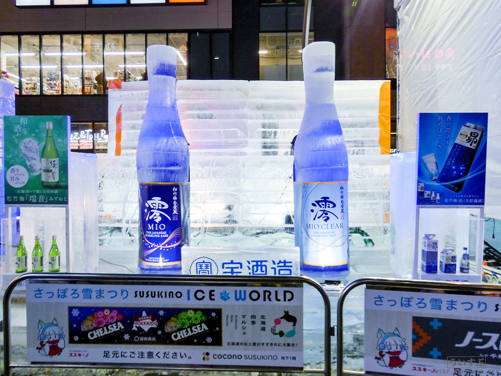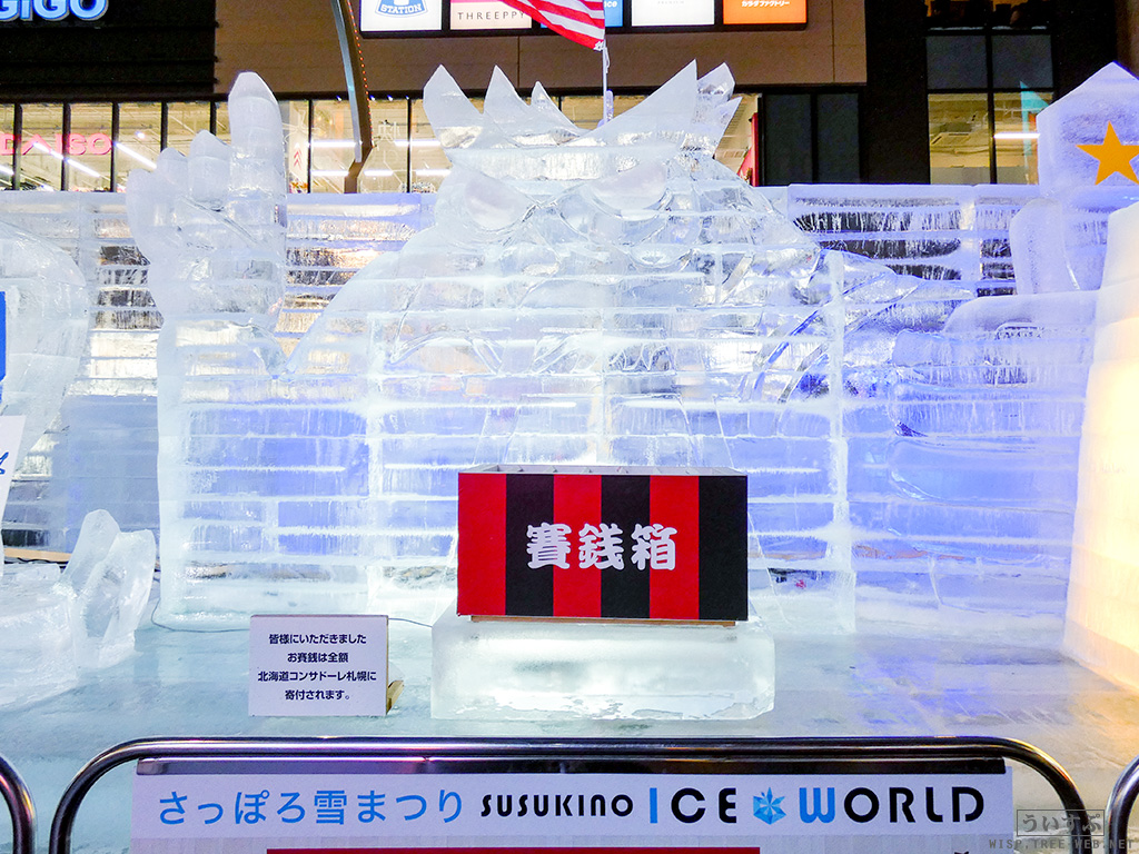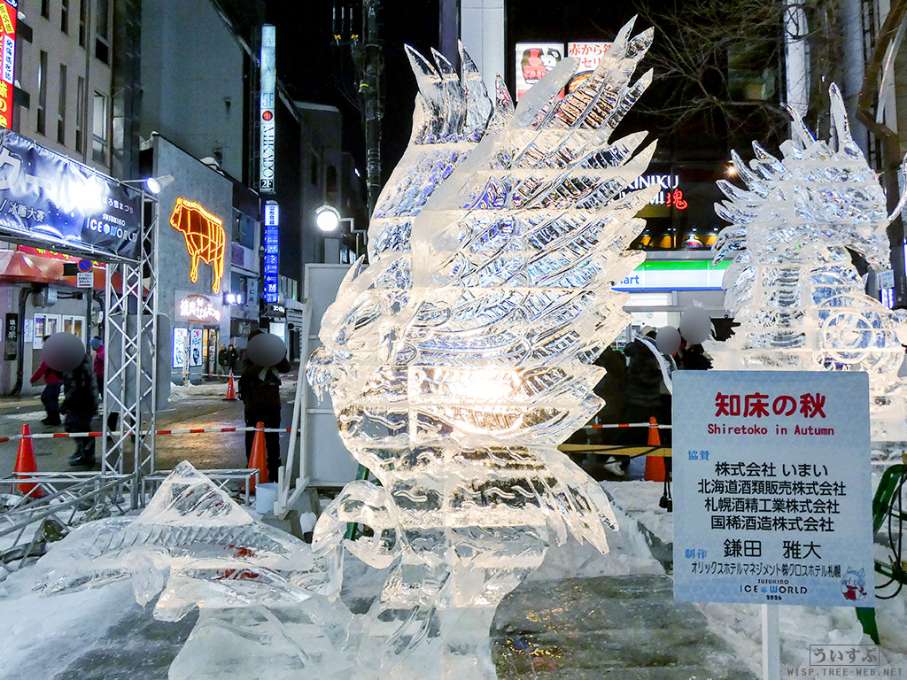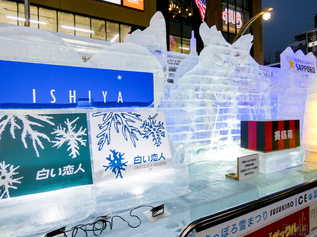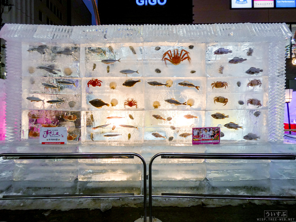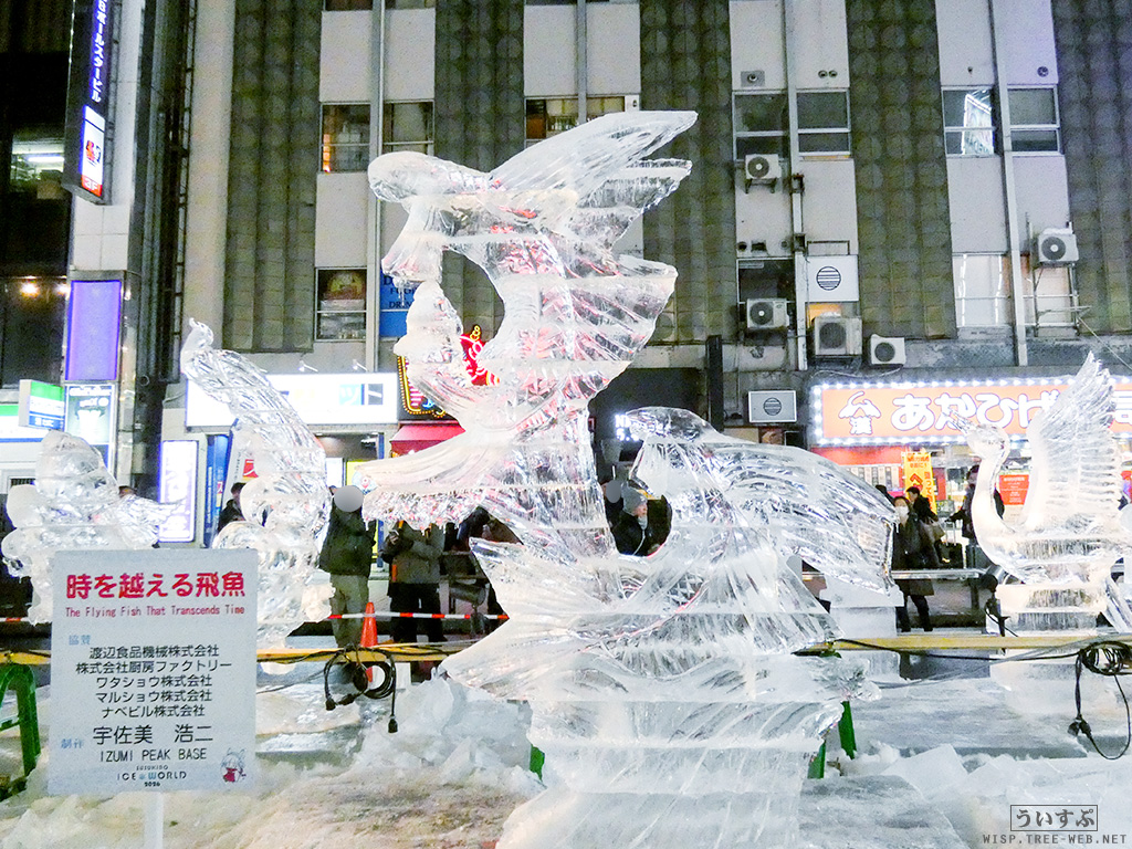 すすきの会場では、氷像を楽しめるコーナーとなっており、暗くなるとライトアップされ、より幻想的な雰囲気を楽しむことのできるエリアです。