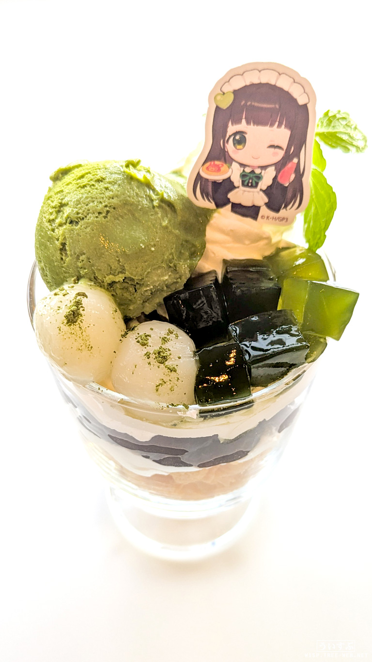 抹茶アイスと小豆、そして白玉団子。和風を感じるパフェです。